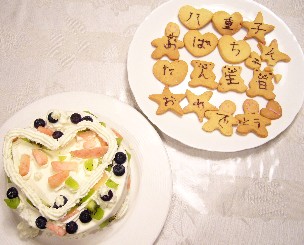 そう、色々な型で抜かれたクッキーにチョコレートでお誕生日おめでとうの字が書いてありました。