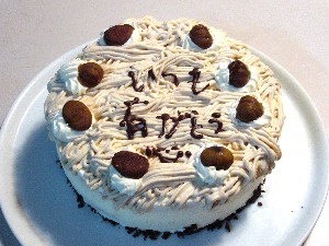 作ったケーキは一台を皆で試食、もう一台は実家に持っていくことにし、そちらをバースデイケーキ仕様に仕上げてくれました。