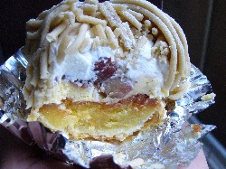 ここ数日、といってもみっちり一日中というのはまだ2日ですが、荷造りの大変 さに早くもグッタリ来ています。 ごっそり詰まった押入れを開け、取り出してまず中身確認、要るものと要らない ものの、さらには捨てるものとリサイクルするものへの仕分け、そして箱詰め。 この10月からこのあたりはゴミの仕分けが変わり、あたらしい分別方法になりま した。 それがまだ把握できていないこともあり、ゴミを分けるのに一苦労。 タイミング悪いです・・・。 まぁ、体力が要るのは想像できましたが、実は意外なところに盲点が・・・。 そう、久しぶりに開けた押入れやモノから出る埃、これが結構難題なのです。 のどが痒いなぁ、鼻がグスグスいう、体が痒い・・・これってもしやダニ!? 元々アレルギー体質の私は子供の頃には埃にとても敏感でした。 しかし、成長するに従い、徐々にアレルギーの発作も出なくなり、埃に対してすっ かり鈍感になっていたため、それほど神経質に避けてはいなかったのですが、そ れが久しぶりに到来したようです。 マスク無しだったのは大失敗。 明日からはしっかり防備して挑みます。 と、前置きが長くなりましたが、そんな荷造りの日々において唯一の楽しみはい つにも増して食べること。 これが本当にお腹がすくのですよ~驚くほど。 考えてみれば肉体労働ですし、ひたすら荷物の仕分け、荷造りの繰り返しなので ストレスがたまるのでしょうね。 今日、近所に買い物に行ったついでにケーキを2つほど購入。 温かい紅茶とともにつかの間のティータイム。 先日こちらでも紹介した季の葩(ときのは)の“パイシュー(210円)”と“モンブラン(320 円)”です。 どちらも初めてではなく、特にパイシューは前出の100円グルメの“ときのはカス ター”と同じ位よく購入する定番です。 “パイシュー”はその名の通りバタークリームがサンドされたフィユタージュをスポ ンジでロールケーキ状に巻き込んだもの。 大好きなケーキです。 しっとりしたスポンジの後に来るサクッとしたパイの食感、そしてスーッと溶け る風味のよいバタークリーム、すべて大好物の組み合わせ。 実はこのお菓子、他のお店でもたまに見ることがありますが、残念ながらその多くは中の パイがしっとりとしてしまっているのです。 ところが、ここ季の葩のものはサクサク。 これはかなりポイント高しです。 いつかお教室でも作ってみたいと、実はかなり前から検討しているのですが、 この限られた時間内でパイ生地、バタークリーム、スポンジという3つの素材を 作り、それを組み合わせていくというのはちょっと厳しいのですよねぇ・・・。 何かいい方法はないかなぁと悩み続けております。 でも、そのうちきっと実施できるようにしたいです。 もう1つのモンブラン。これは、最近はよく見かけるようになった国産栗、和栗 を使ったタイプ。 パートブリゼのパリッとした台にぎっしりと詰まった感じのクレームダマンド (マジパンの香りが強い)、その上には中央に和栗、周りは生クリーム、表面は バターでのばした和栗のペーストで覆われています。 通常のモンブランに比べると甘さ控えめ、香りがほのかで、非常にお上品な印象 を受けます。 かなり前になりますが、新百合ヶ丘にあるリリエンベルグというケーキ屋さんで はじめて和栗のモンブランをいただきました。 ケーキの作り自体はかなり異なっているものの、そのときもやはり同じように上 品なお味という印象を受けました。 例えば、フランスのモンブランの老舗、プランタンのものは、ご存知の通り、か なりしっかりとした甘さとマロンペーストのお味。 どちらかというとガツンと来る存在感がしっかりあるもの。 それに対して、和栗の方は思いはあれど強い主張をしない、どこか控えめという か、楚々としたイメージなのです。 これはまさに日本人の気質と同じ!?。 どちらのモンブランも美味ですが、私個人としてはプランタンのガツンとした強 いテーストが好みです。 しっかりした甘さのマロンペーストにこれまたしっかりとした甘さのサクッとし たメレンゲの台。 そこに濃厚な、ちょっぴり塩味の効いた生クリームがクセになるおいしさです。 季の葩のお菓子は相対的に甘さ控えめのあっさりとしたものが多いように思い ます。 言い方を変えると、クセのない食べやすい味なので、一般的な多くの消費者の口 に合うのでしょうね。 いつもたくさんのお客様でにぎわっています。 そして、毎回感心させられるのが、どの店員さんも接客態度がとても丁寧なこと。 お店にとって、これは本当に大切な事だなぁとつくづく思います。 おいしいケーキを気持ちよく買って帰ることが出来ると、そのおいしさも倍増、 味覚も精神も満たされて、より幸せなひと時を味わうことが出来ます。 これからもこういうお店が増えていくといいなと思います。 って、それを口実にまた甘いものを食べ続けてしまう私(苦笑)。