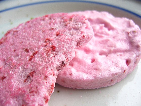 カリッと焼きこまれた軽いメレンゲに、フリーズドライのイチゴがちりばめられています。