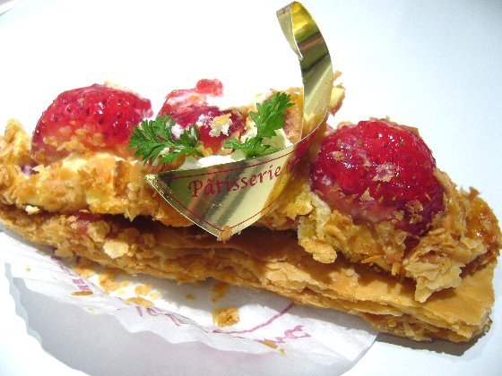 いわゆるナポレオンパイといわれる、苺とカスタードと生クリームを組み合わせたミルフィーユです。